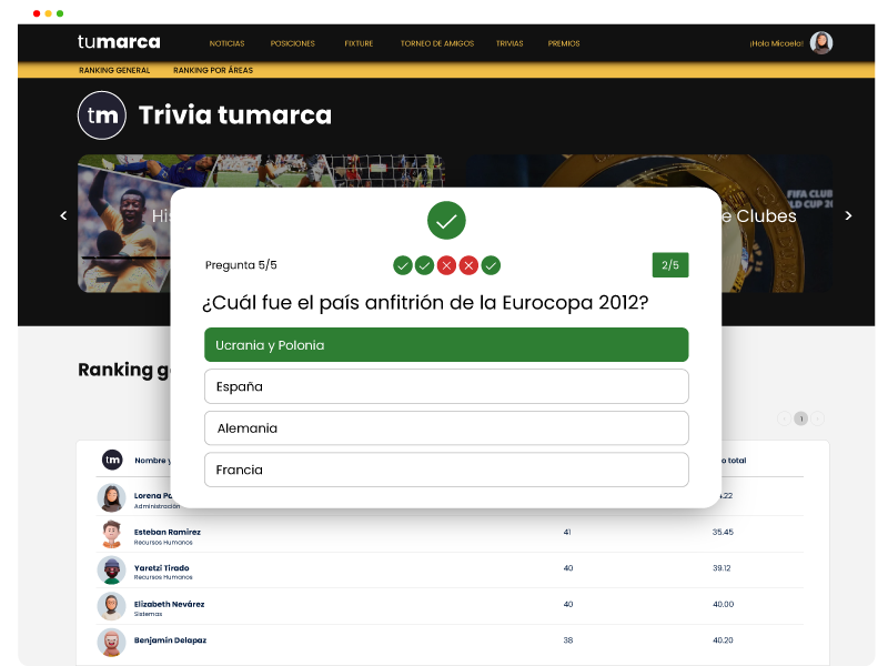 Compite en torneos de todo el mundo con Fútbol Prode, la plataforma de quiniela para empresas más completa y personalizable, adaptada con la imagen de tu marca.